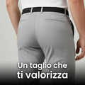 Il nostro pantalone elegante, resistente e confortevole, avvolge la tua silhouette senza mai stringere né deformarsi.