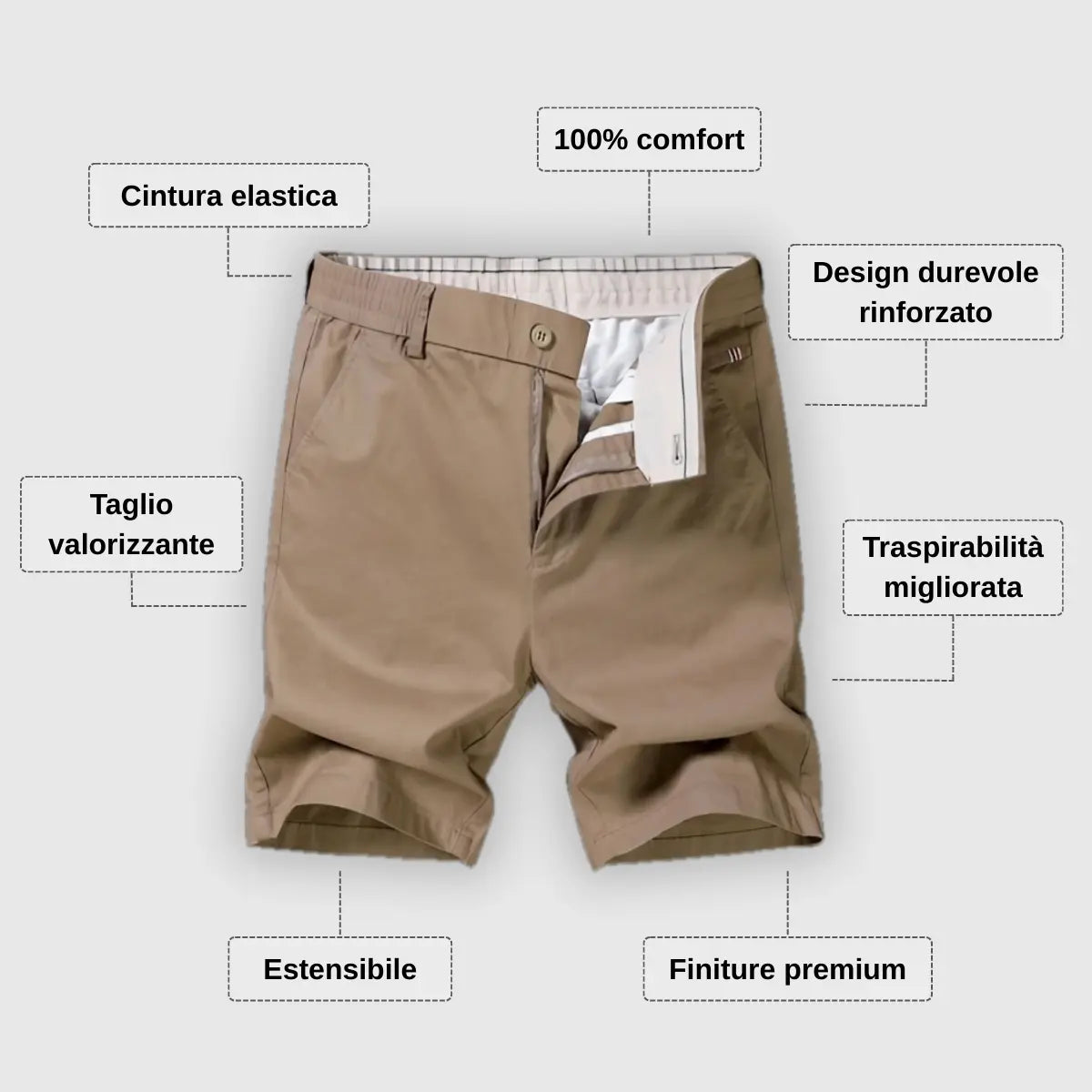 Cuciture rinforzate, orlo pulito, passanti larghi e chiusura ben studiata: un pantaloncino pensato per durare nel tempo, anche dopo più stagioni.
